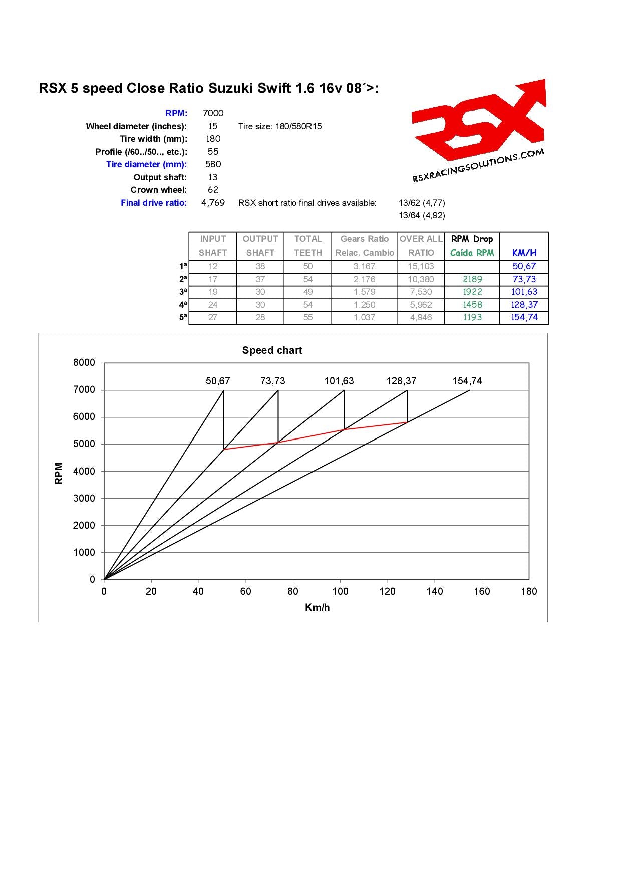 Rapport rapproché pour boîte de vitesses Suzuki Swift à 5 rapports